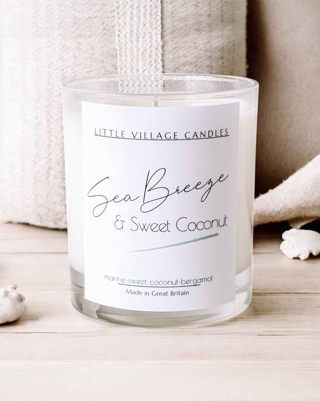 Put the lime in the coconut and drink them both up—this tropical escape in a jar is everything you need to reset and unwind. The Sea Breeze & Sweet Coconut Candle from Little Village Candles is infused with our signature Paradise Beach Fragrance Oil, a cool and relaxing scent crafted to transport you straight to sun-soaked shores.